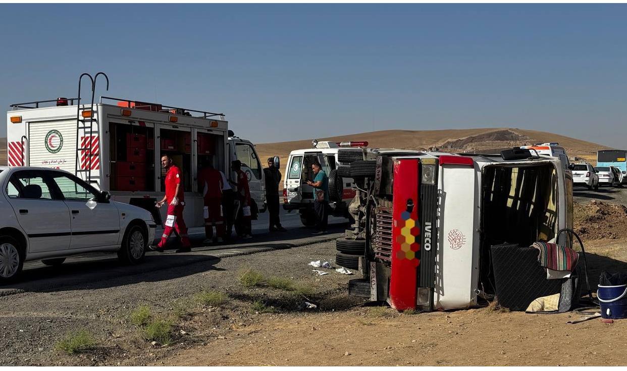۲۰ حادثهدیده و ۱۱ مصدوم در حادثه انحراف از جاده و واژگونی مینیبوس در میاندوآب