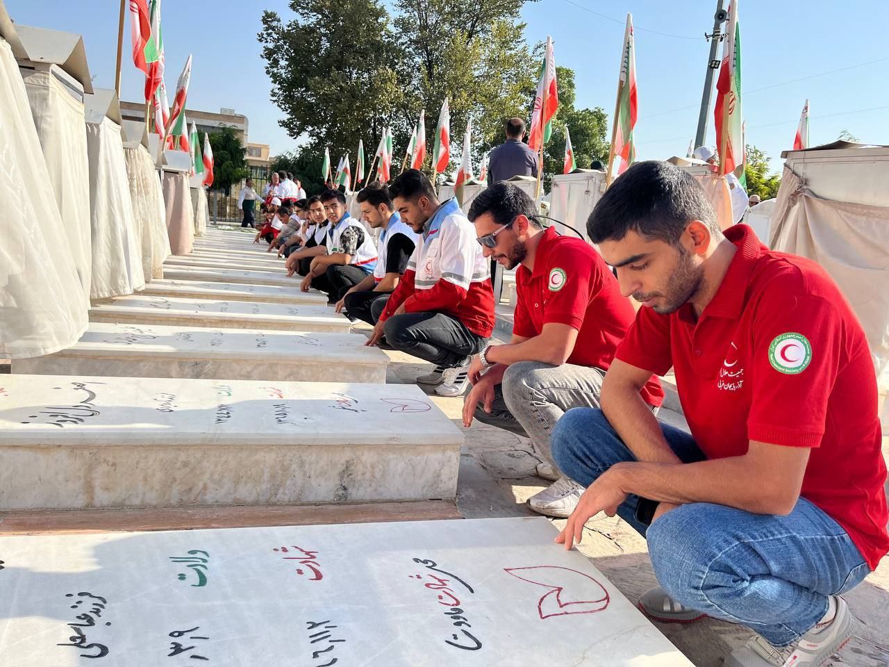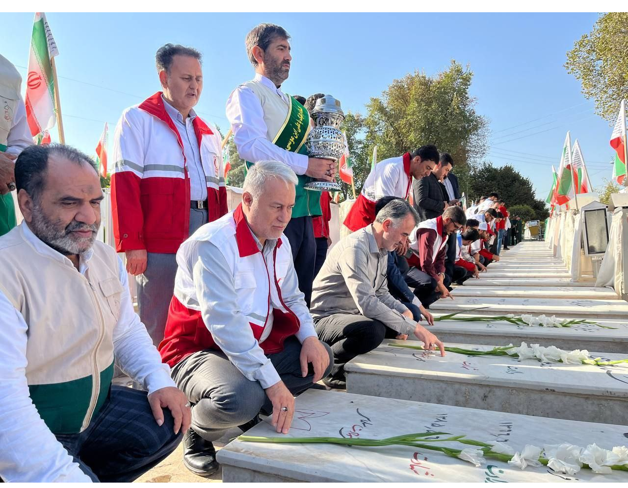 اعضای هلالاحمر خوی و باروق در آیین غبارروبی مزار شهدا شرکت کردند