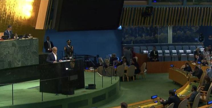 یکبار دیگر در این مجمع اعلام میکنم که ایران هرگز به دنبال ساخت سلاح هستهای نبوده و نخواهد بود. ما به دنبال سلاح هستهای نیستیم و این یک باور اعتقادی و فتوای رهبری است در نتیجه به هیچوجه به دنبال آن سلاحهای کشتار جمعی نبودیم و نخواهیم بود. در جایی که برهم زننده آرامش در منطقه، اسرائیل هست ایران باید تحریم شود ما یک شعری داریم میگوید «گنه کرد در بلخ آهنگری به شوشتر زدند گردن مسگری. یکی جای دیگری دارد منطقه را به هم میزند و کسان دیگری را دارند تحریم میکنند.