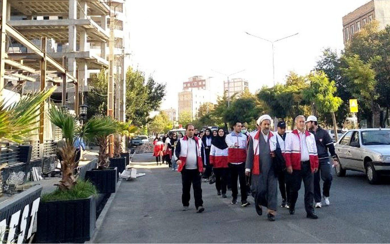 همایش پیادهروی پرسنل و داوطلبان جمعیت هلالاحمر خوی به مناسبت هفته دفاع مقدس برگزار شد