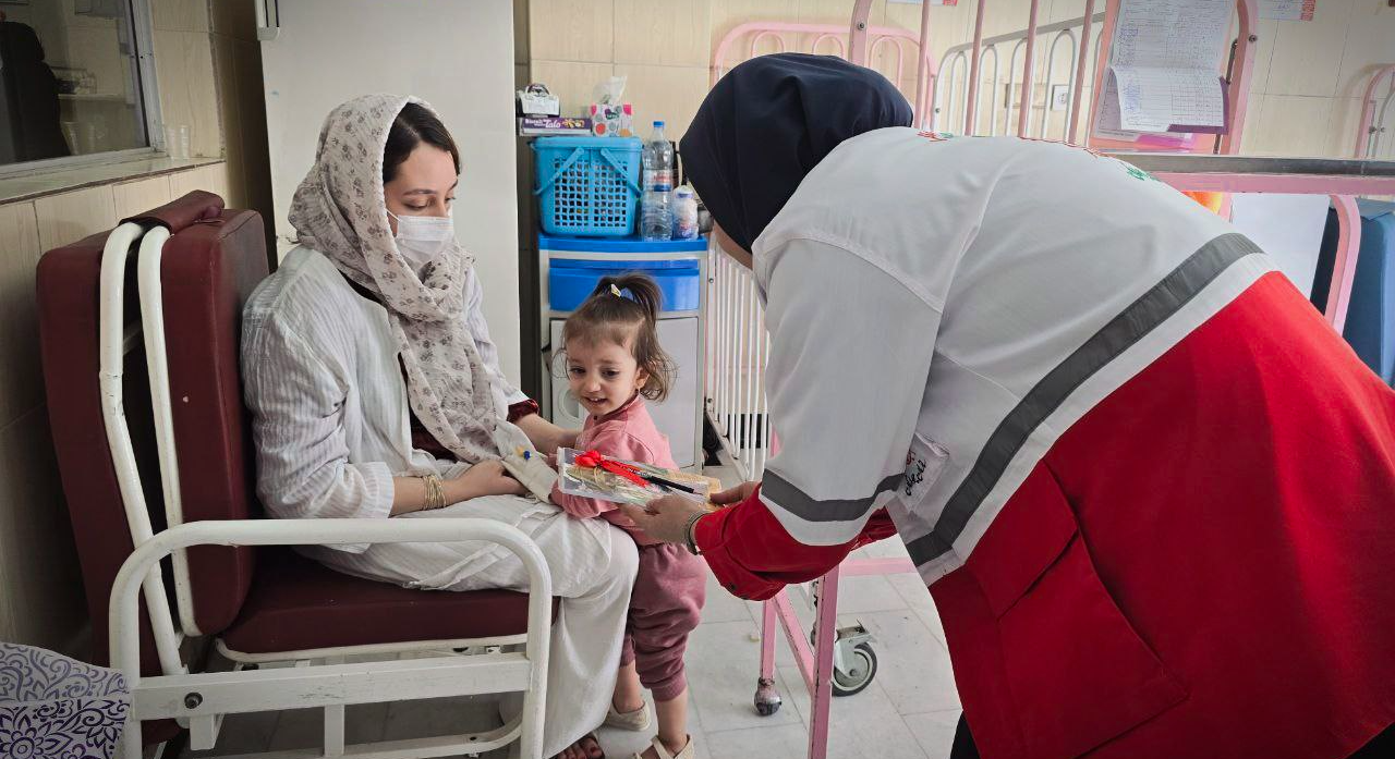 داوطلبان و اعضا جوانان جمعیت هلال احمر بوکان از کودکان بستری در بیمارستان شهید قلی‌پور عیادت کردند