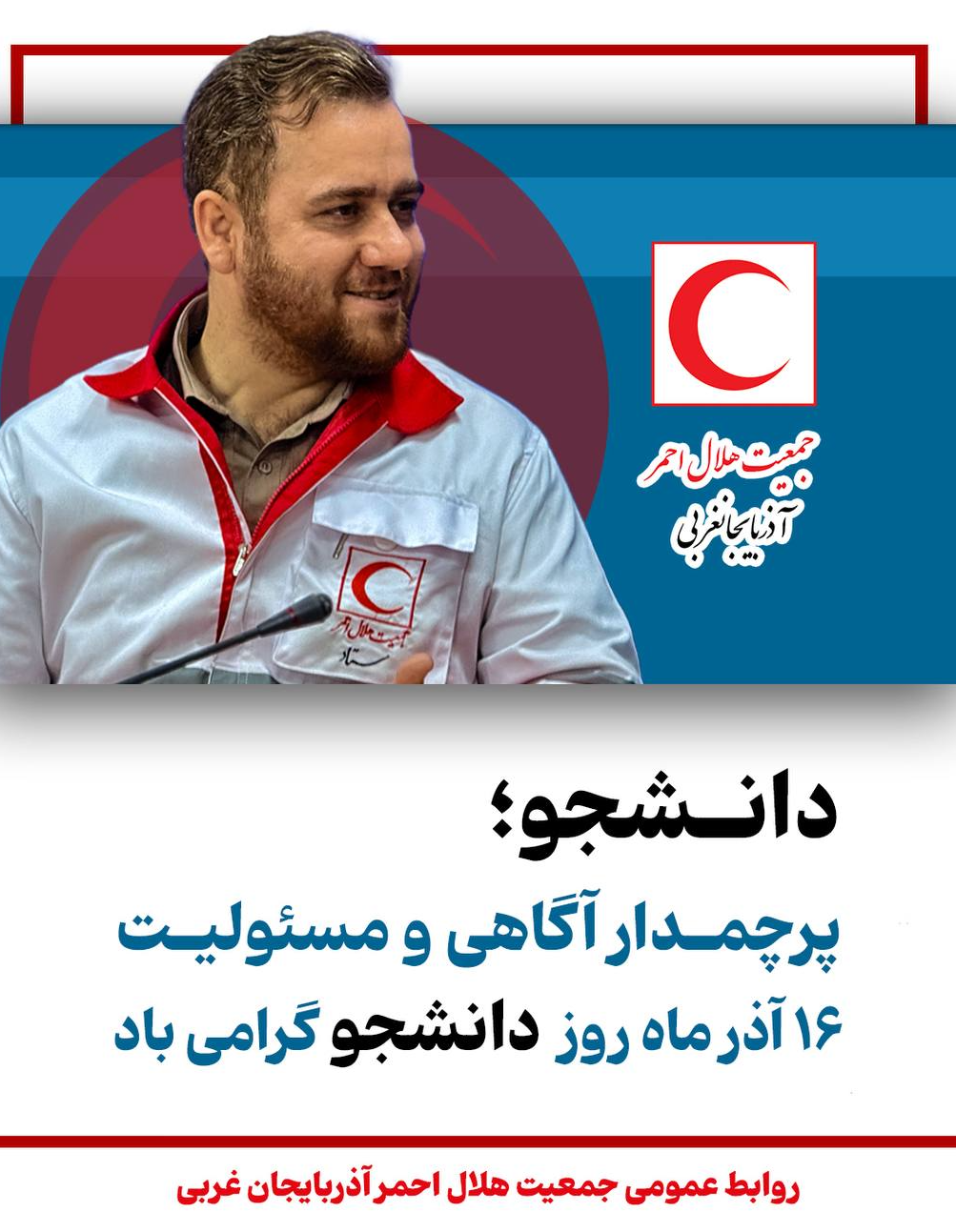 پیام مدیرعامل جمعیت هلالاحمر آذربایجانغربی به مناسبت ۱۶ آذر؛ روز دانشجو