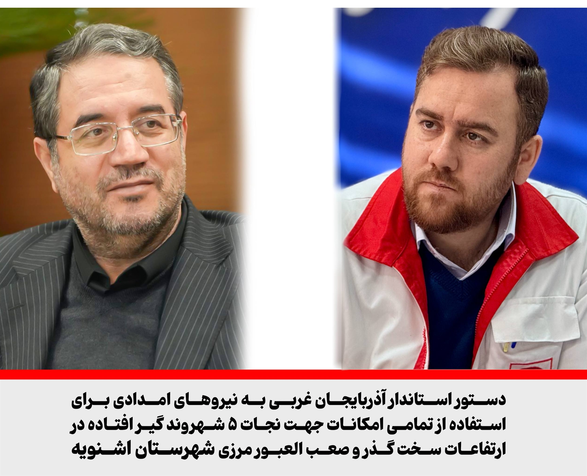 استاندار آذربایجانغربی با صدور دستوری، بر بسیج تمامی امکانات و نیروهای امدادی برای نجات ۵ شهروند مرزنشین محصور در برف و کولاک ارتفاعات صعبالعبور شهرستان اشنویه تأکید کرد.