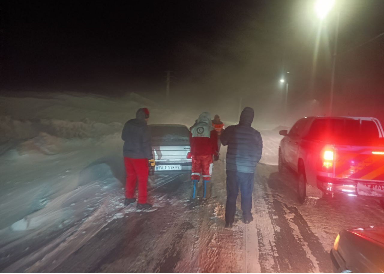 امدادگران هلالاحمر شهرستان تکاب به یاری مسافران و خودروهای گرفتار در برف و کولاک شتافتند